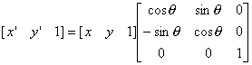点[x y]は同次座標では[x y 1]と表現する。また、同次座標で点[X Y W]は普通の座標系では