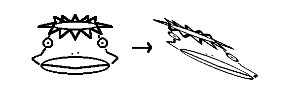 (2.5)このように、同次座標を使うと、多くの変換を統一的な3×3の変換行列の形式で書ける。また、多くの変換を続けて行う際、変換行列を予めかけ合わせることができる。例えば、-60度回転した後[1 2]ほど移動を考える。まず、回転行列は次式となる。