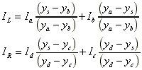 はそれぞれ点A,B,C,D,LおよびRにおける輝度です。