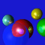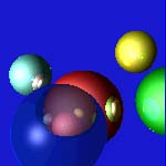 このプログラムでは、レイトレーシングの追跡の深さ、各球の特性、視点、背景色を任意に指定できる。
